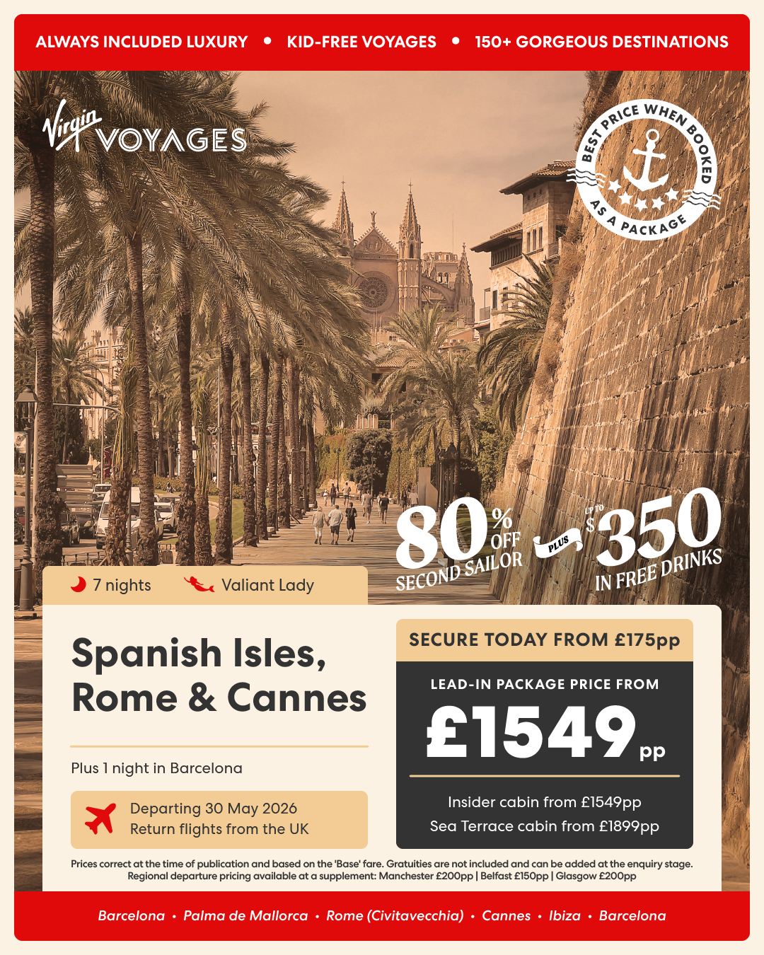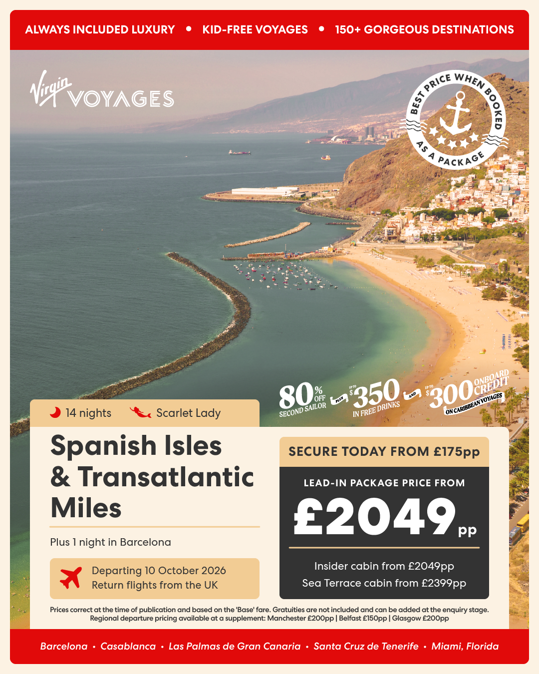 14 night Spanish Isles & Transatlantic Miles + 1 night in Barcelona - 10 October 2026