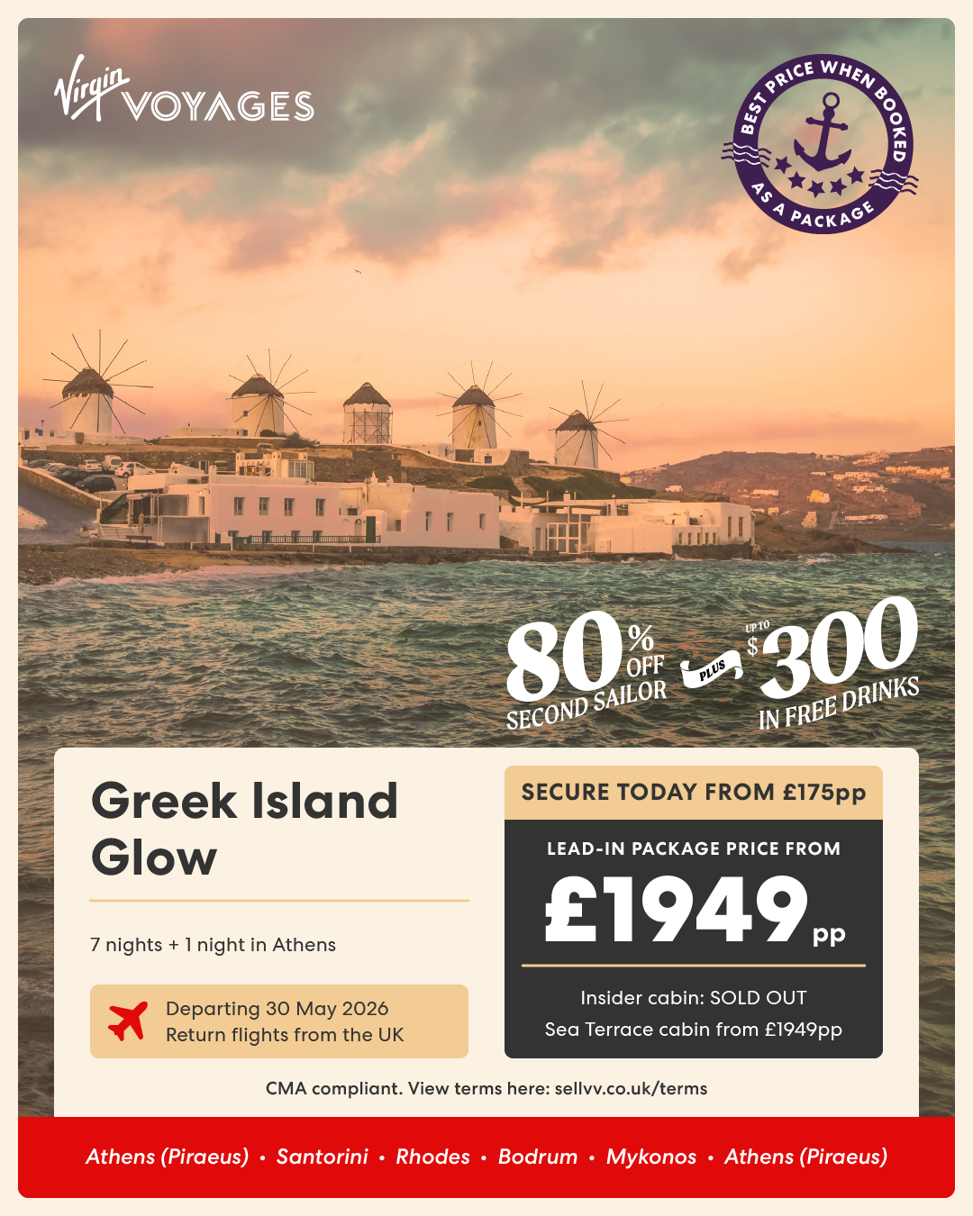 7 night Greek Island Glow + 1 night in Athens - 30 May 2026