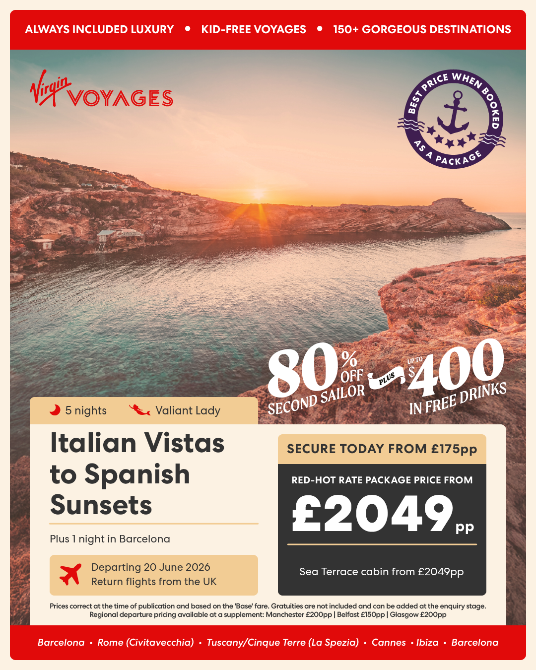 5 night Italian Vistas to Spanish Sunsets + 1 night in Barcelona - 20 June 2026