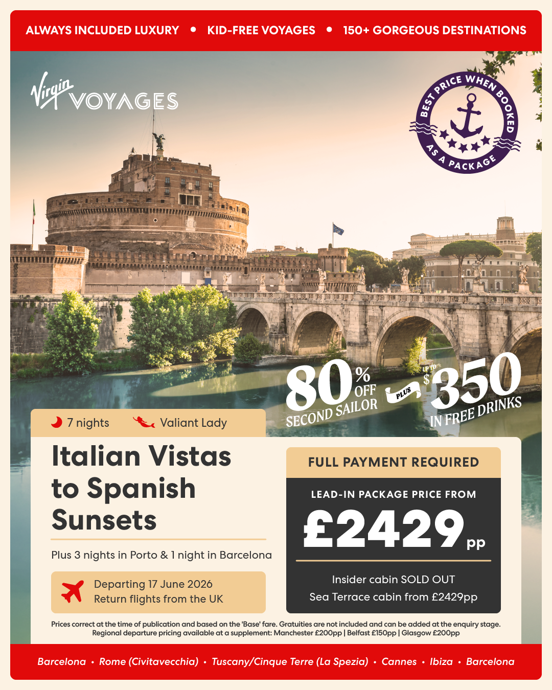 7 night Italian Vistas to Spanish Sunsets + 3 nights in Porto + 1 night in Barcelona - 17 June 2026