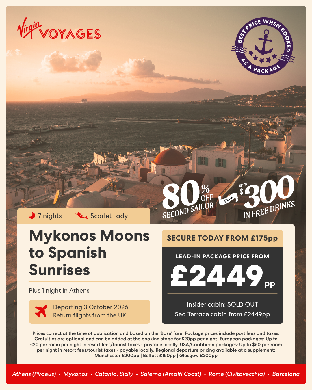 7 night Mykonos Moons to Spanish Sunrises + 1 night in Athens - 3 October 2026