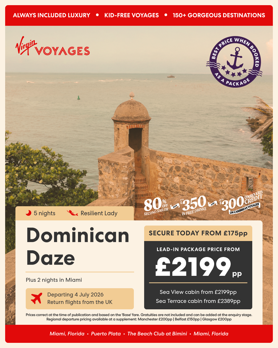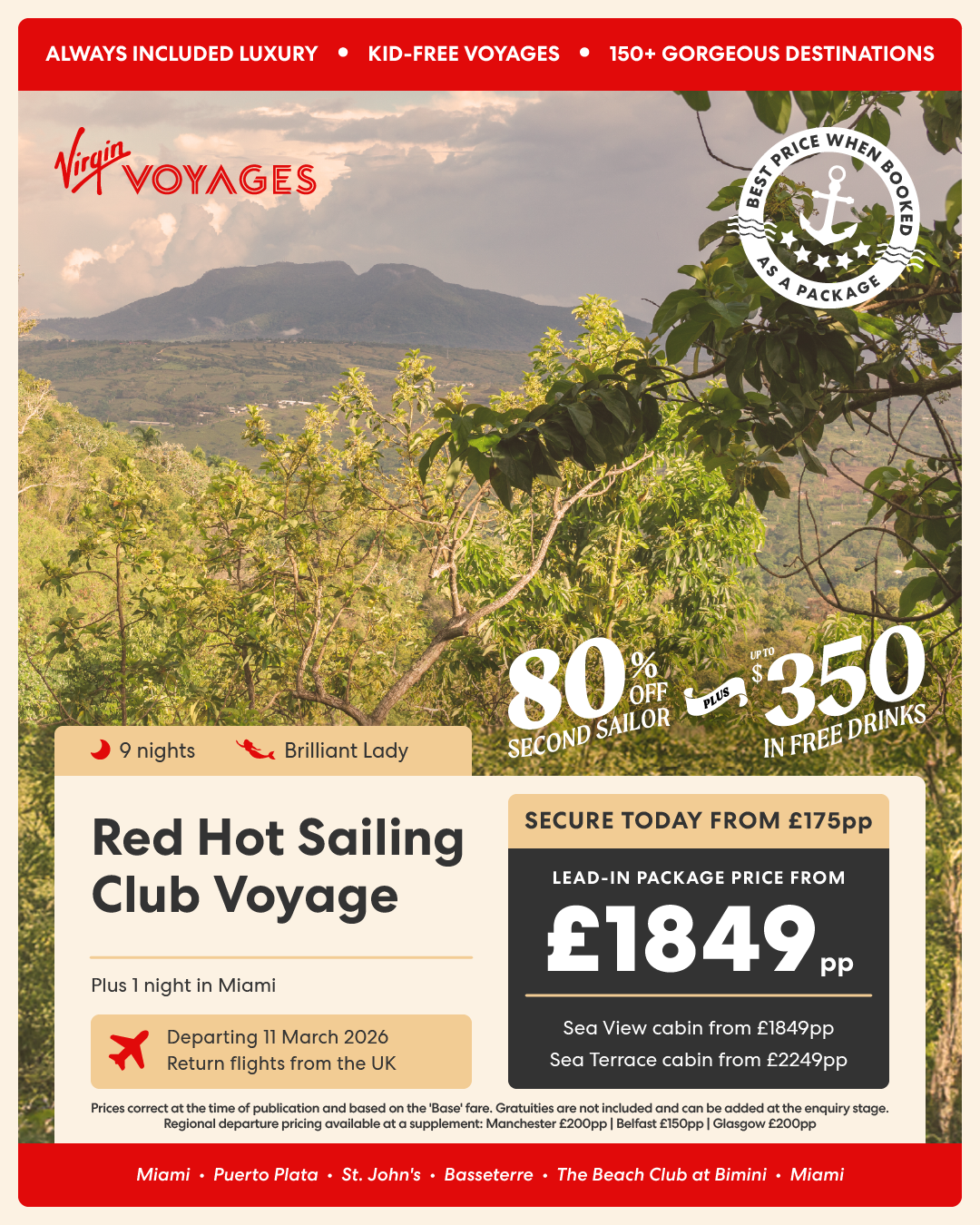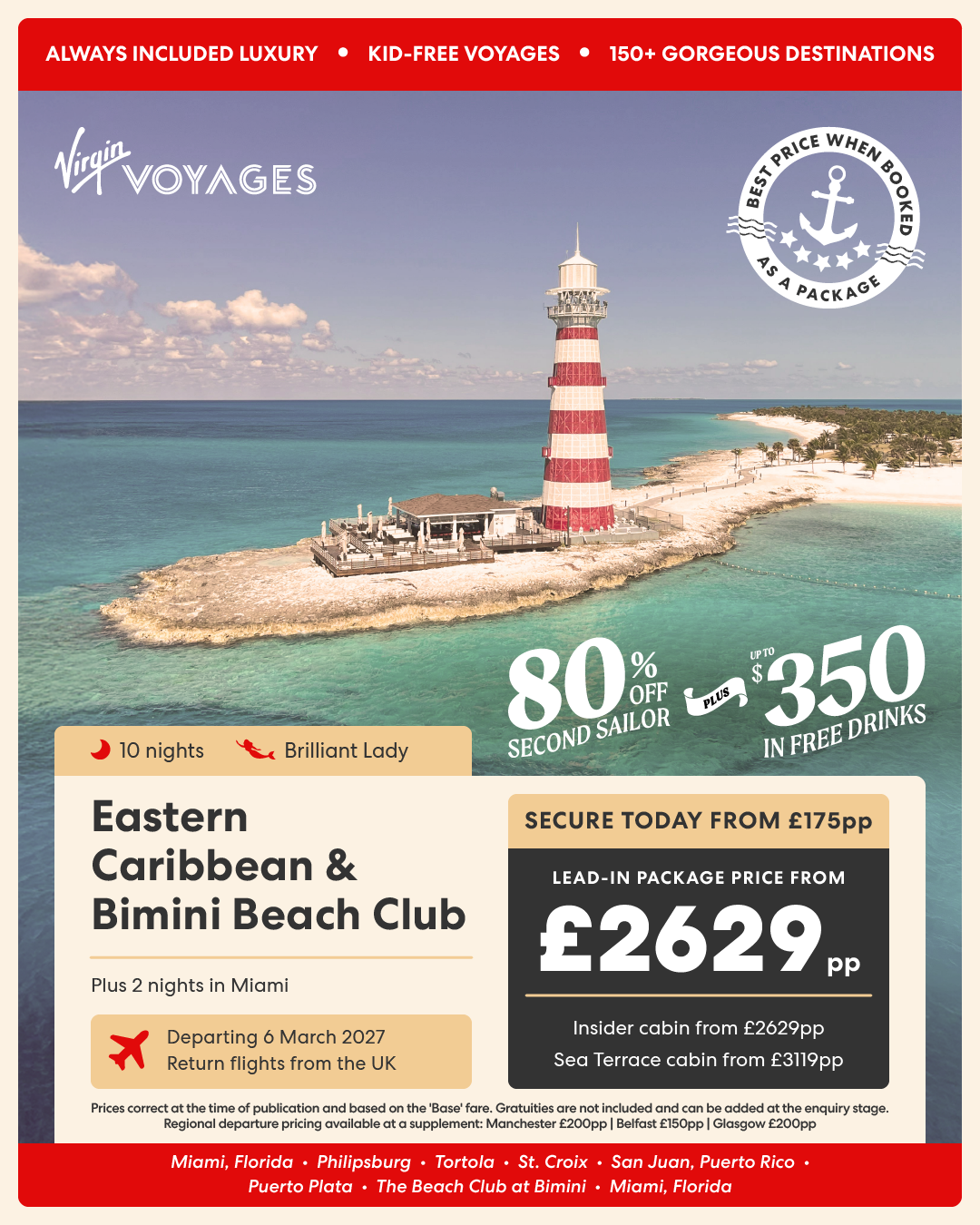 10 night Eastern Caribbean & Bimini Beach Club + 2 nights in Miami - 6 March 2027