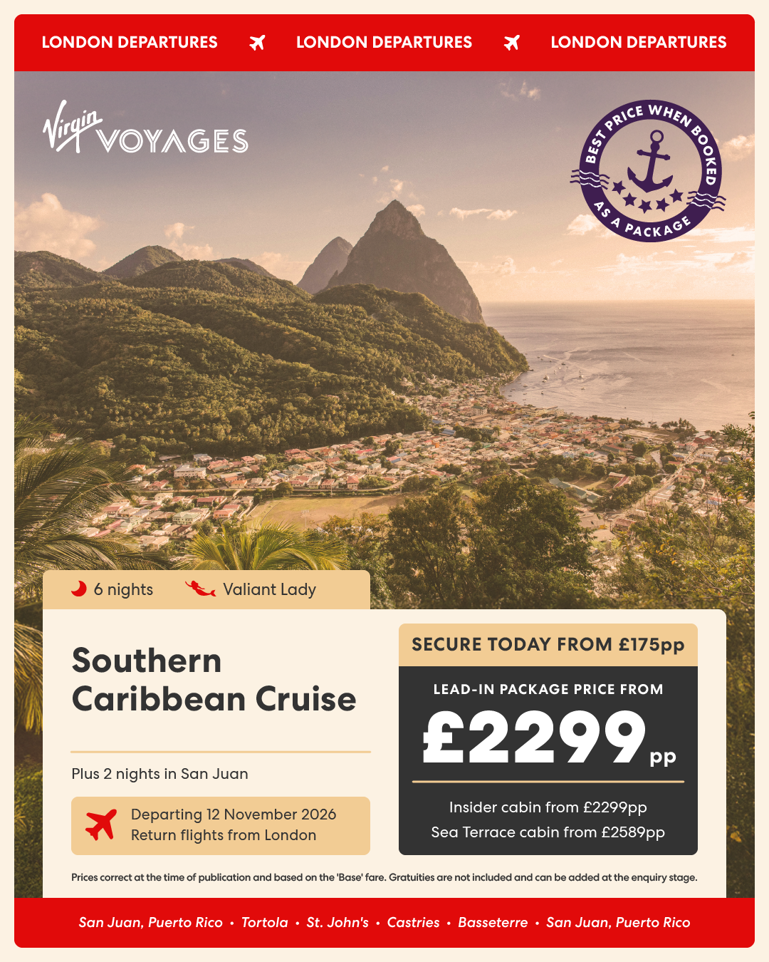 6 night Southern Caribbean Cruise + 2 night pre-cruise stay in San Juan – 12 November 2026