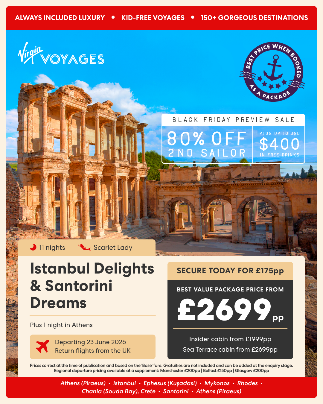 11 night Istanbul Delights & Santorini Dreams + 1 night in Athens 23 June 2026