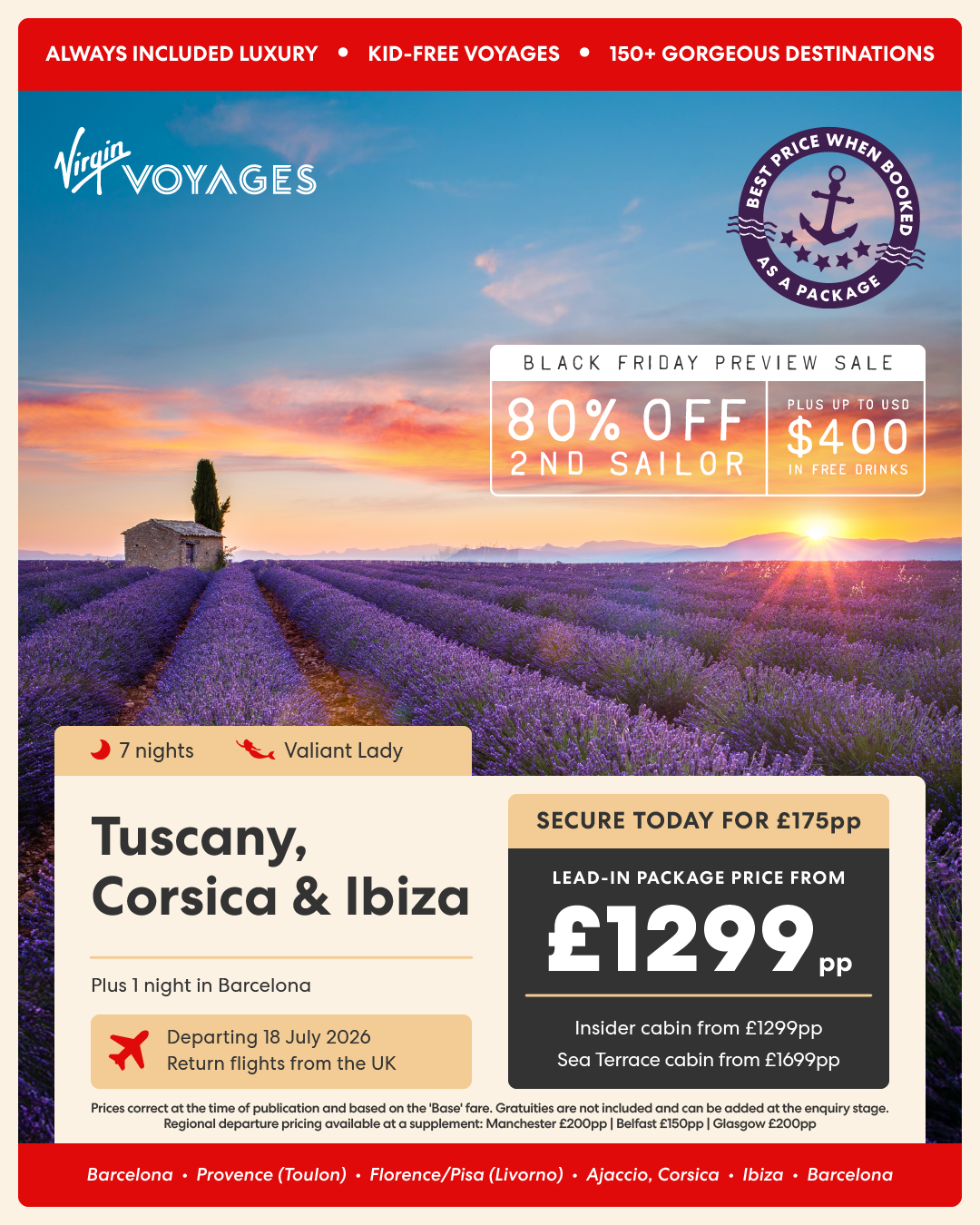 7 night Tuscany, Corsica & Ibiza + 1 night in Barcelona - 18 July 2026