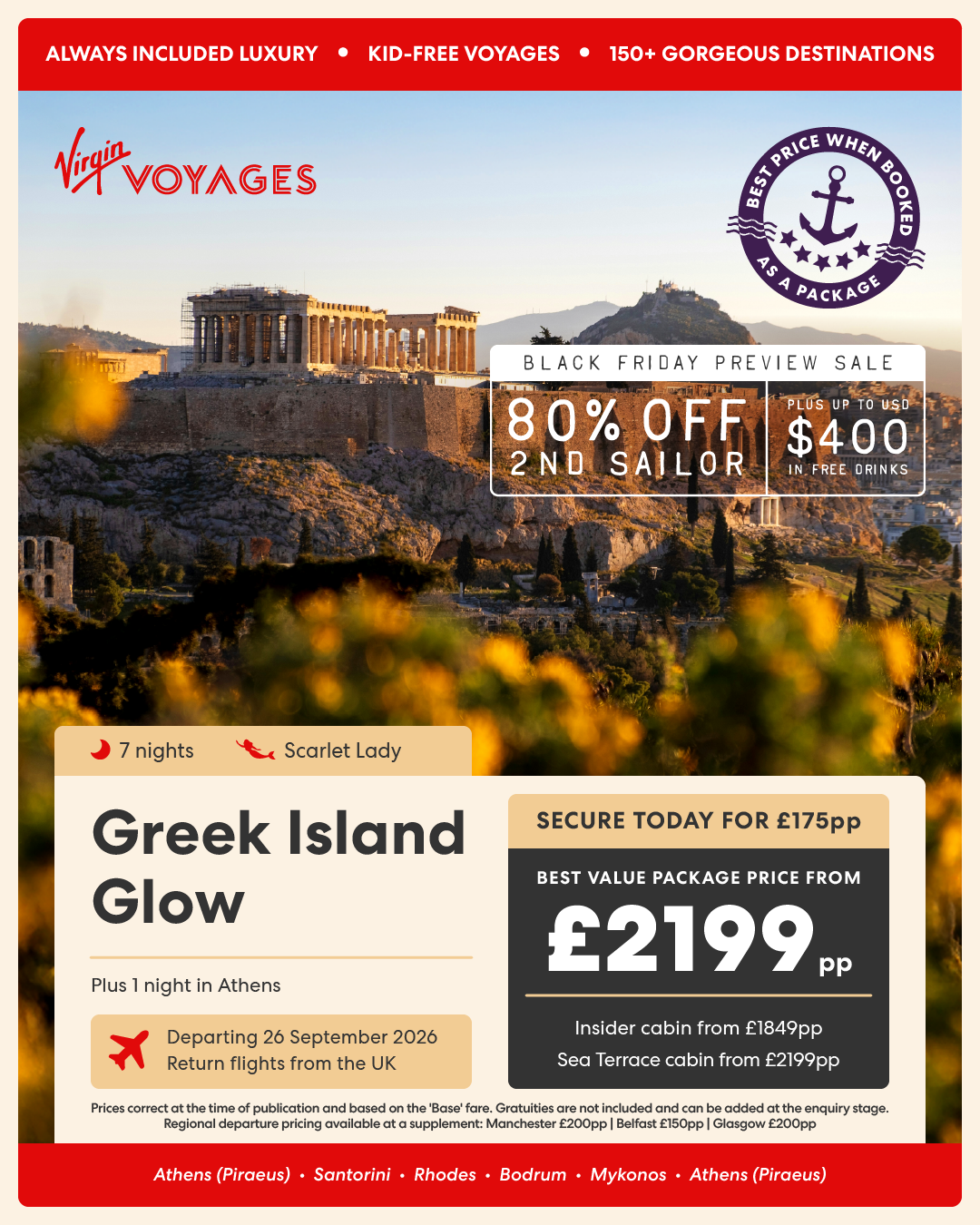 7 night Greek Island Glow + 1 night in Athens - 26 September 2026