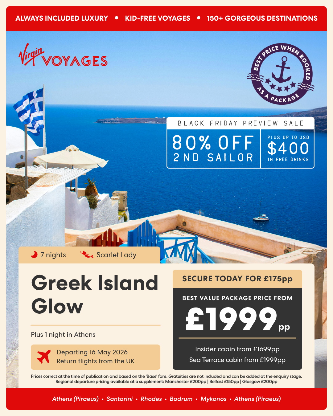 7 night Greek Island Glow + 1 night in Athens 16 May 2026