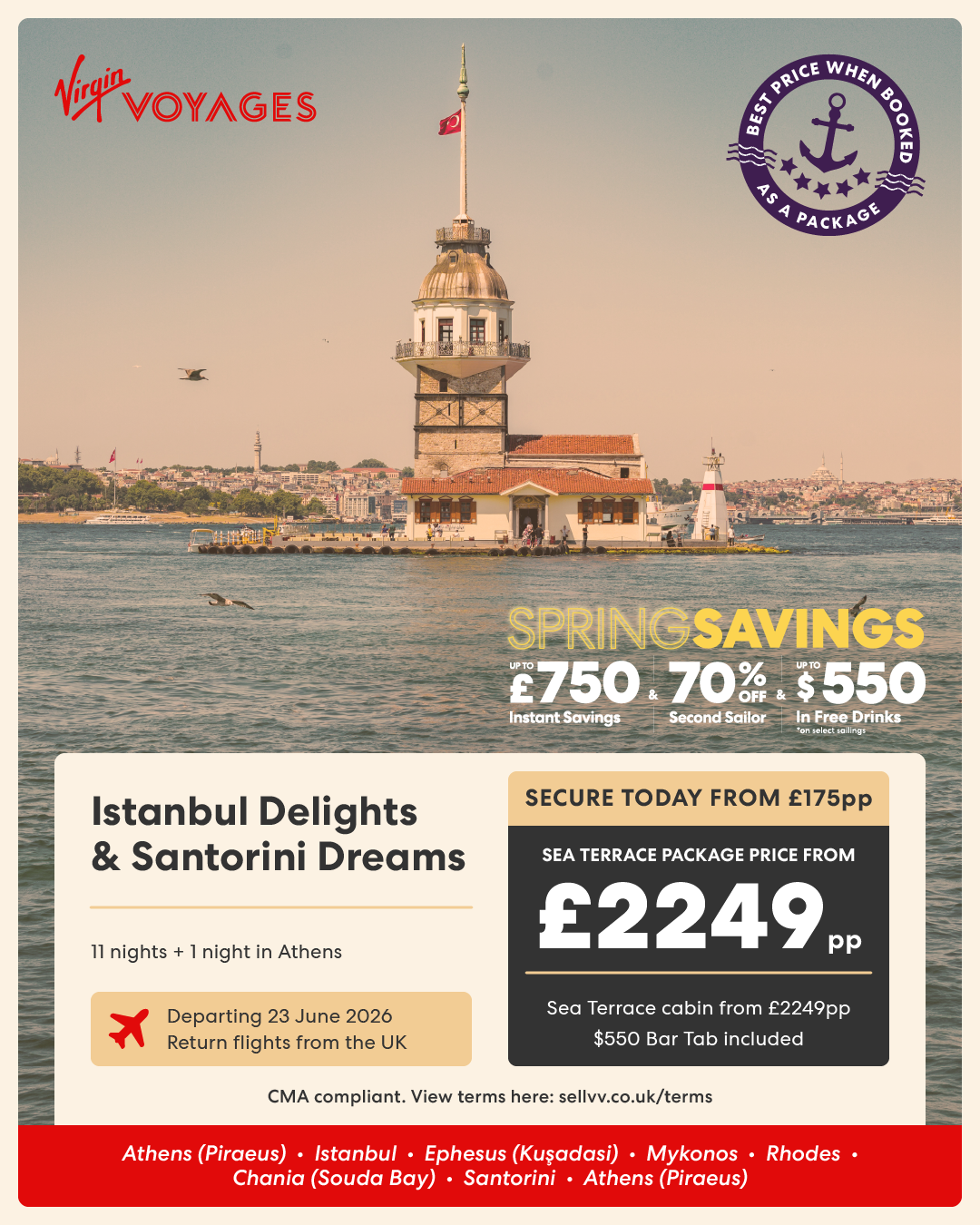 11 night Istanbul Delights & Santorini Dreams + 1 night in Athens - 23 June 2026