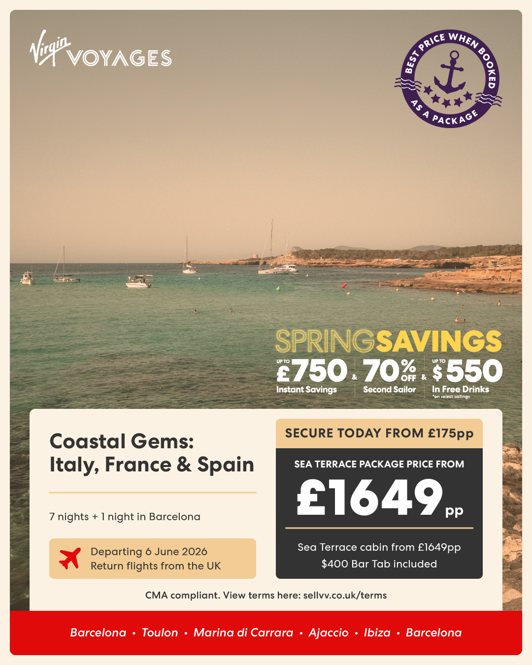 7 night Coastal Gems: Italy, France & Spain + 1 night in Barcelona - 6 June 2026